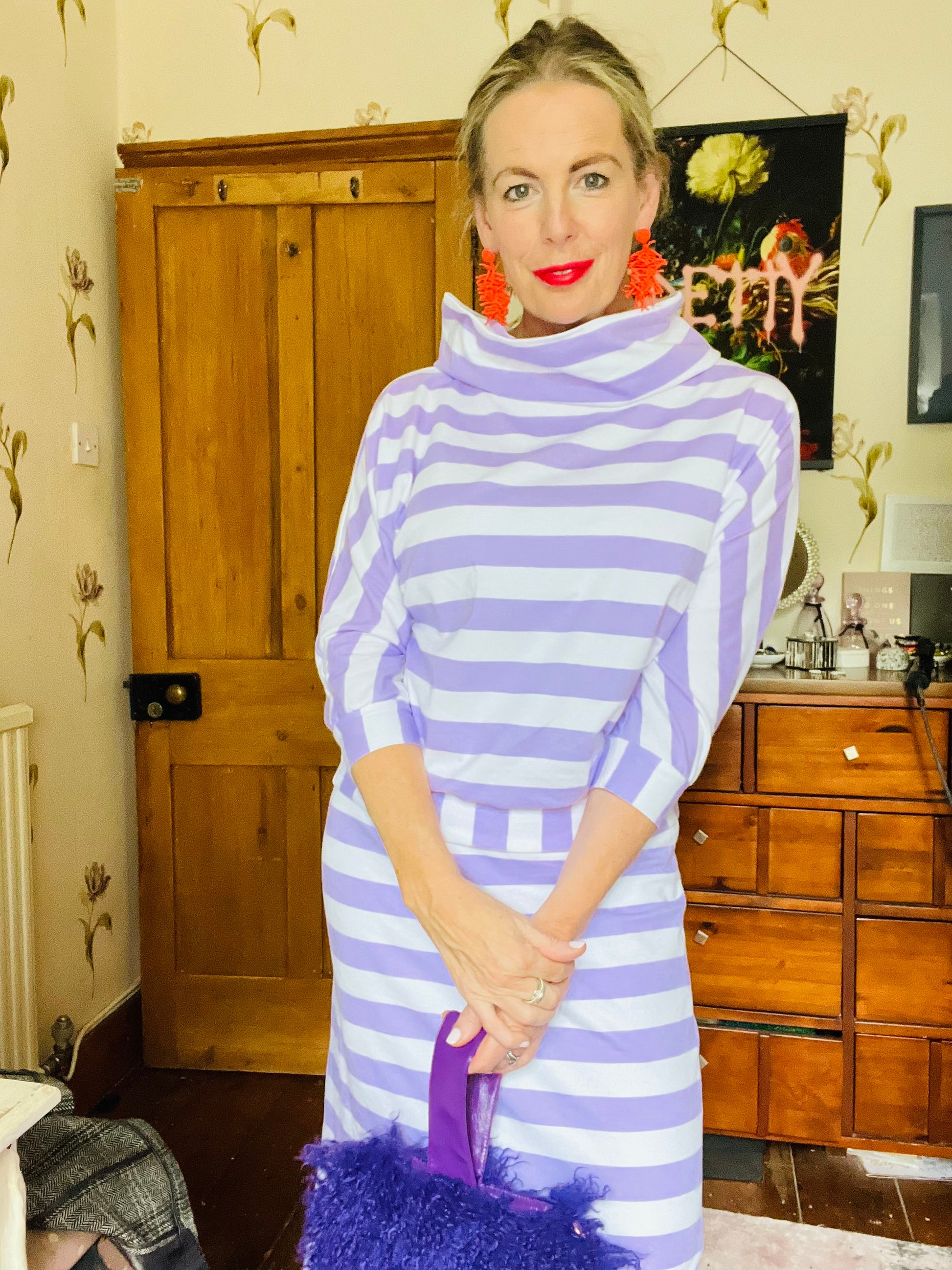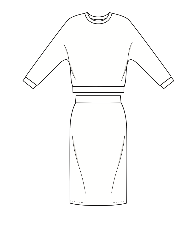 The Go Two Piece PDF pattern is a stylish and simple 2-piece jersey separates set with a complementary loop scarf. The simple design combines refined style and comfort. The top has a gentle batwing sleeve and a band that sits comfortably on your lower waist. The skirt band is designed so it doesn’t need elastic- all you need is the fabric, thread and you're good to go!